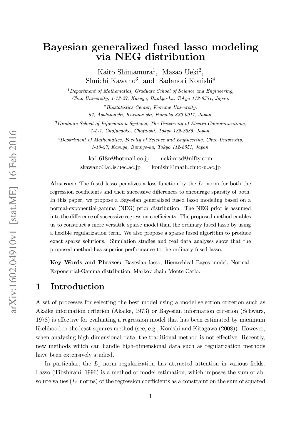 The fused lasso penalizes a loss function by the norm for both the regression coefficients and their successive differences to encourage sparsity of both. In this paper, we propose a Bayesian generalized fused lasso modeling based on a normal-exponential-gamma (NEG) prior distribution. The NEG prior is assumed into the difference of successive regression coefficients. The proposed method enables us to construct a more versatile sparse model than the ordinary fused lasso by using a flexible regularization term. We also propose a sparse fused algorithm to produce exact sparse solutions. Simulation studies and real data analyses show that the proposed method has superior performance to the ordinary fused lasso.