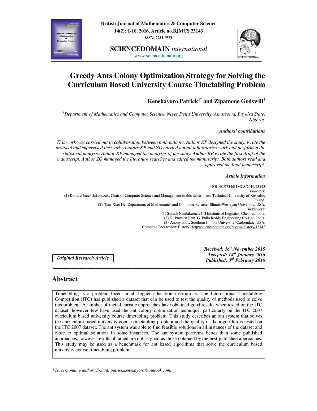 Greedy Ants Colony Optimization Strategy for Solving the Curriculum