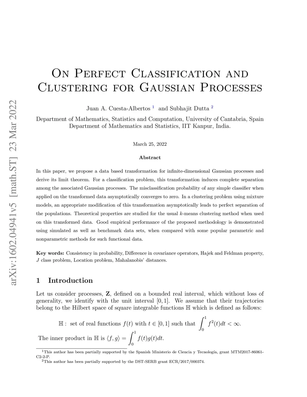 On Perfect Classification and Clustering for Gaussian Processes