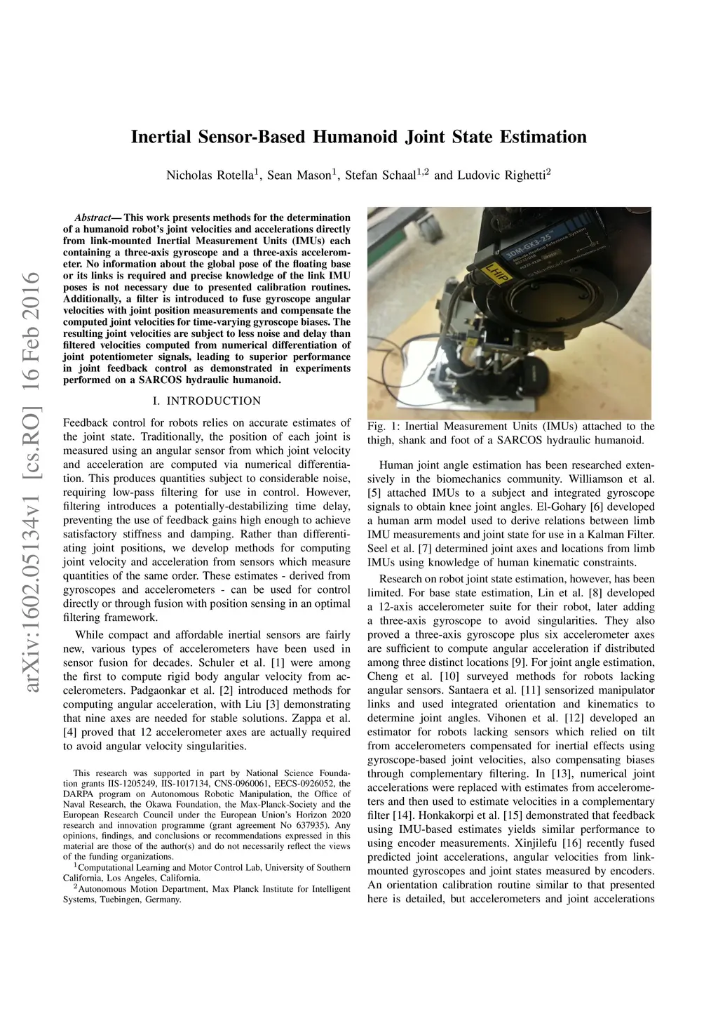 Inertial Sensor-Based Humanoid Joint State Estimation