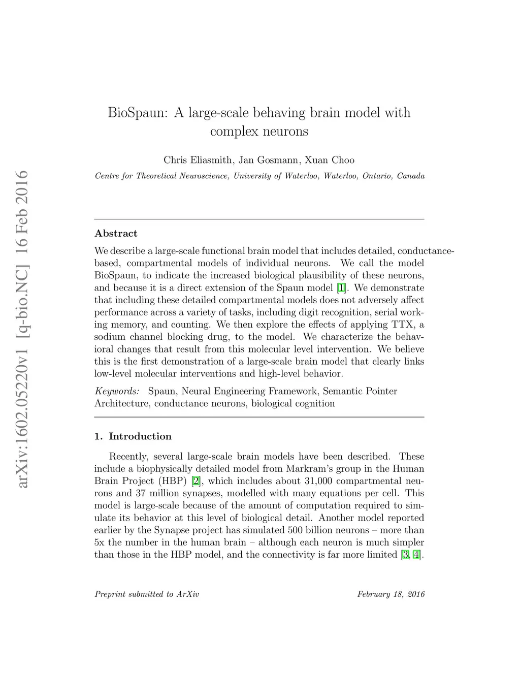 BioSpaun: A large-scale behaving brain model with complex neurons