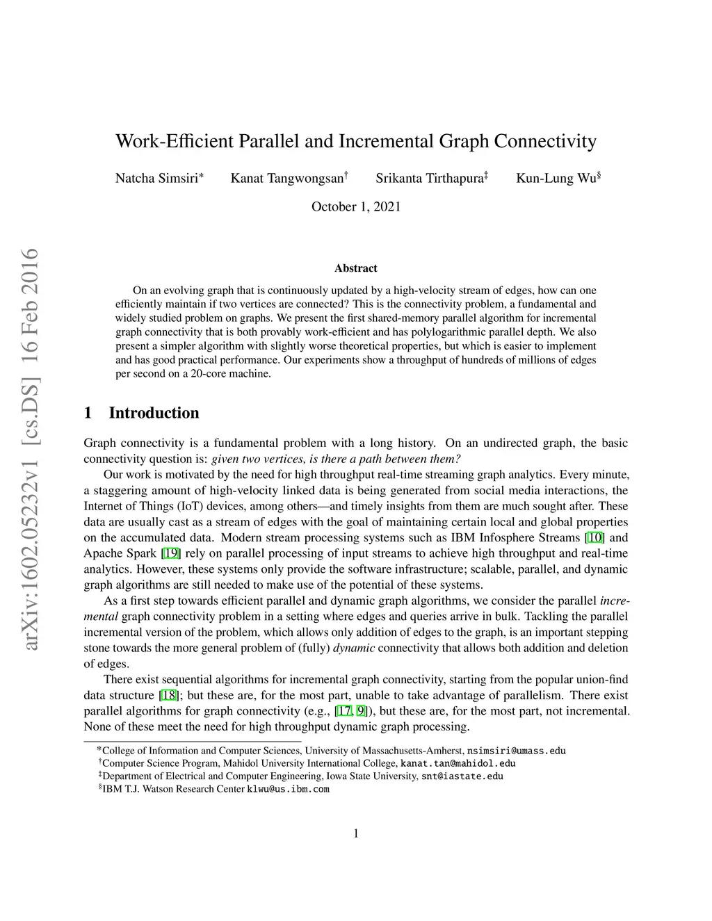 On an evolving graph that is continuously updated by a high-velocity stream of edges, how can one efficiently maintain if two vertices are connected? This is the connectivity problem, a fundamental and widely studied problem on graphs. We present the first shared-memory parallel algorithm for incremental graph connectivity that is both provably work-efficient and has polylogarithmic parallel depth. We also present a simpler algorithm with slightly worse theoretical properties, but which is easier to implement and has good practical performance. Our experiments show a throughput of hundreds of millions of edges per second on a -core machine.