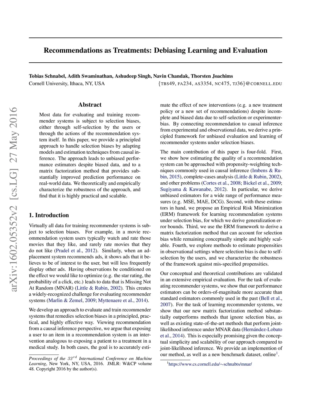 Recommendations as Treatments: Debiasing Learning and Evaluation