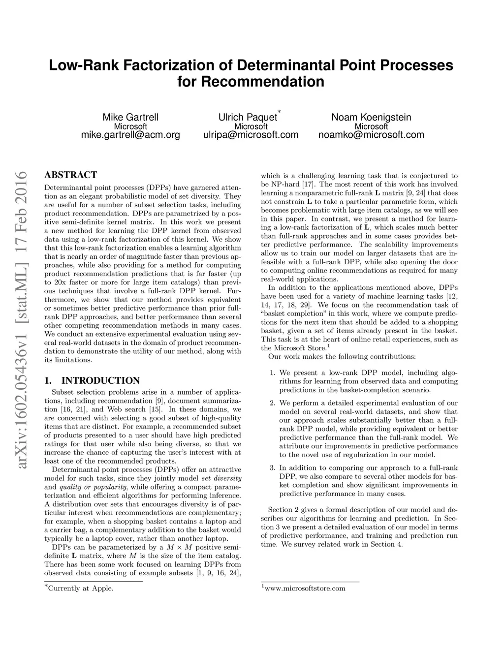 Low-Rank Factorization of Determinantal Point Processes for