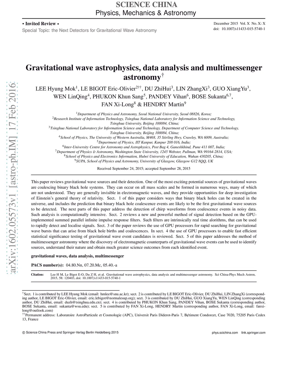 This paper reviews gravitational wave sources and their detection. One of the most exciting potential sources of gravitational waves are coalescing binary black hole systems. They can occur on all mass scales and be formed in numerous ways, many of which are not understood. They are generally invisible in electromagnetic waves, and they provide opportunities for deep investigation of Einstein's general theory of relativity. Sect. 1 of this paper considers ways that binary black holes can be created in the universe, and includes the prediction that binary black hole coalescence events are likely to be the first gravitational wave sources to be detected. The next parts of this paper address the detection of chirp waveforms from coalescence events in noisy data. Such analysis is computationally intensive. Sect. 2 reviews a new and powerful method of signal detection based on the GPU-implemented summed parallel infinite impulse response filters. Such filters are intrinsically real time alorithms, that can be used to rapidly detect and localise signals. Sect. 3 of the paper reviews the use of GPU processors for rapid searching for gravitational wave bursts that can arise from black hole births and coalescences. In sect. 4 the use of GPU processors to enable fast efficient statistical significance testing of gravitational wave event candidates is reviewed. Sect. 5 of this paper addresses the method of multimessenger astronomy where the discovery of electromagnetic counterparts of gravitational wave events can be used to identify sources, understand their nature and obtain much greater science outcomes from each identified event.