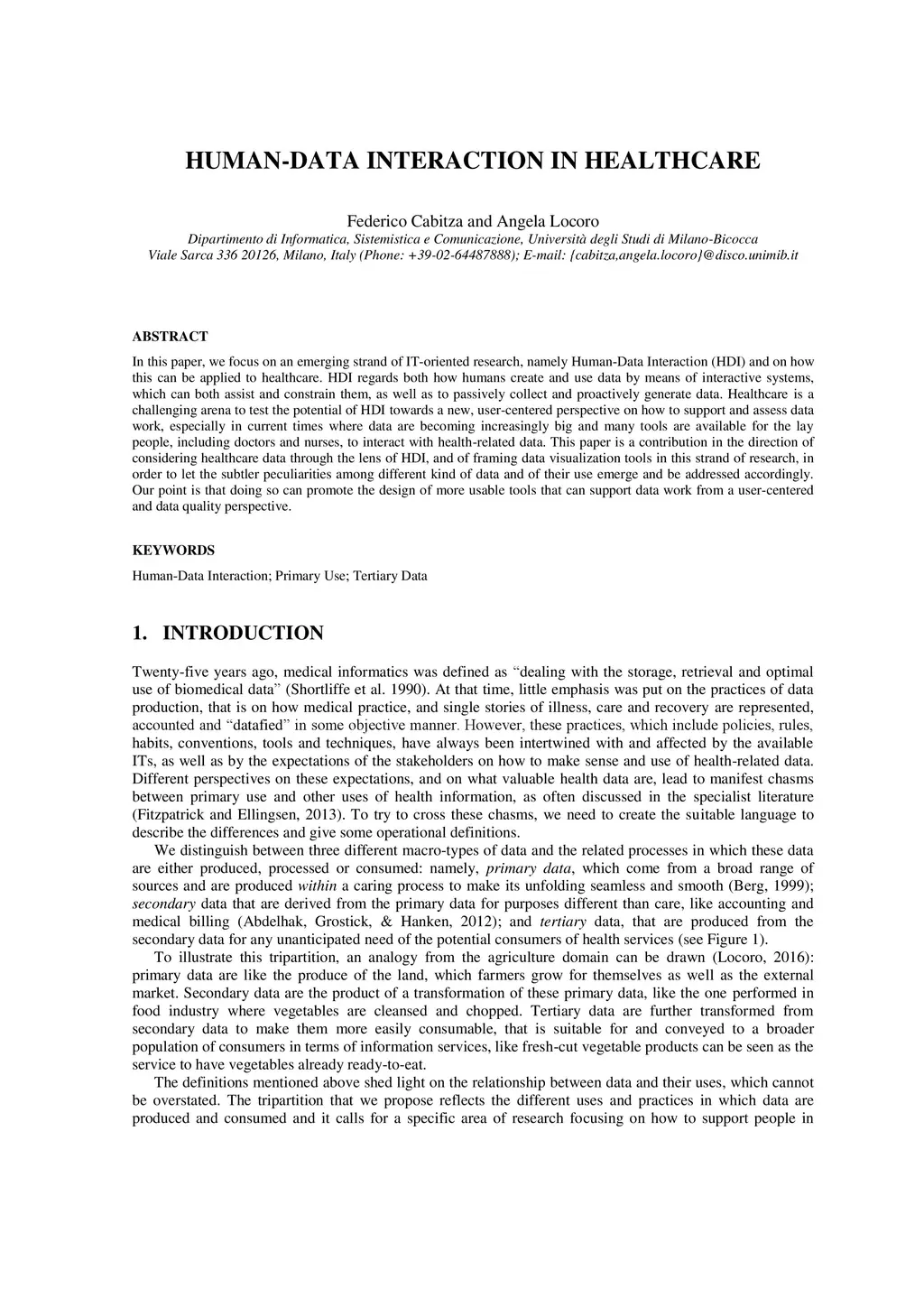 In this paper, we focus on an emerging strand of IT-oriented research, namely Human-Data Interaction (HDI) and how this can be applied to healthcare. HDI regards both how humans create and use data by means of interactive systems, which can both assist and constrain them, as well as to passively collect and proactively generate data. Healthcare provides a challenging arena to test the potential of HDI to provide a new, user-centered perspective on how data work should be supported and assessed, especially in the light of the fact that data are becoming increasingly big and that many tools are now available for the lay people, including doctors and nurses, to interact with health-related data.