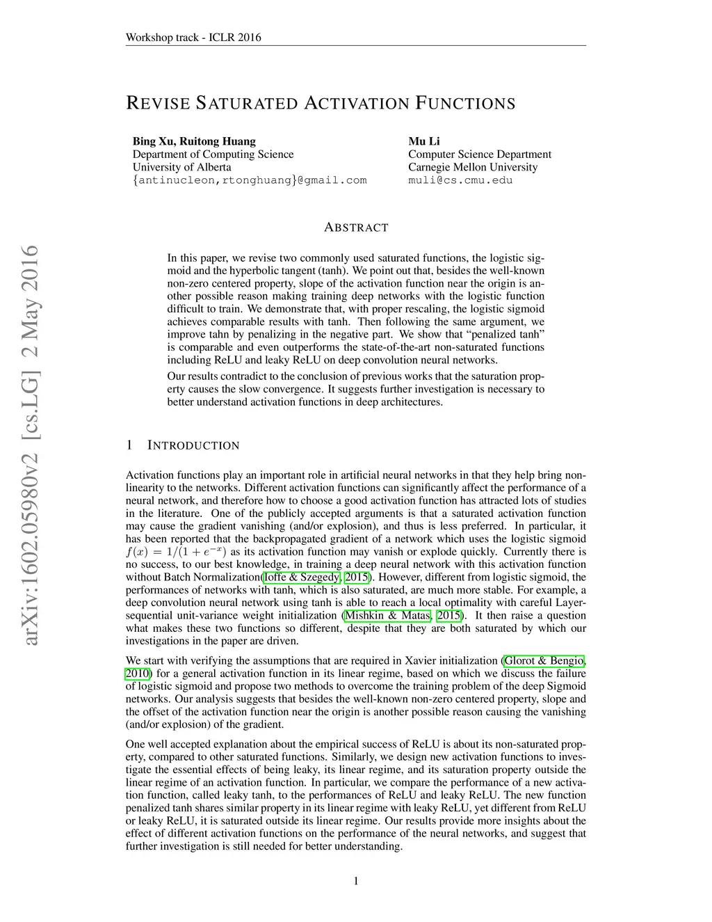 In this paper, we revise two commonly used saturated functions, the logistic sigmoid and the hyperbolic tangent (tanh). We point out that, besides the well-known non-zero centered property, slope of the activation function near the origin is another possible reason making training deep networks with the logistic function difficult to train. We demonstrate that, with proper rescaling, the logistic sigmoid achieves comparable results with tanh. Then following the same argument, we improve tahn by penalizing in the negative part. We show that "penalized tanh" is comparable and even outperforms the state-of-the-art non-saturated functions including ReLU and leaky ReLU on deep convolution neural networks. Our results contradict to the conclusion of previous works that the saturation property causes the slow convergence. It suggests further investigation is necessary to better understand activation functions in deep architectures.