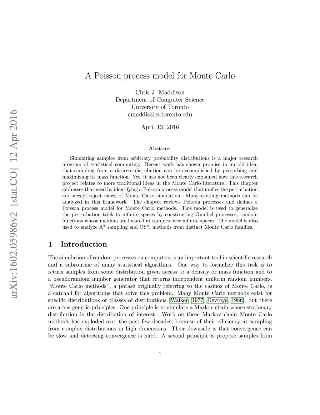 Simulating samples from arbitrary probability distributions is a major research program of statistical computing. Recent work has shown promise in an old idea, that sampling from a discrete distribution can be accomplished by perturbing and maximizing its mass function. Yet, it has not been clearly explained how this research project relates to more traditional ideas in the Monte Carlo literature. This chapter addresses that need by identifying a Poisson process model that unifies the perturbation and accept-reject views of Monte Carlo simulation. Many existing methods can be analyzed in this framework. The chapter reviews Poisson processes and defines a Poisson process model for Monte Carlo methods. This model is used to generalize the perturbation trick to infinite spaces by constructing Gumbel processes, random functions whose maxima are located at samples over infinite spaces. The model is also used to analyze A* sampling and OS*, two methods from distinct Monte Carlo families.