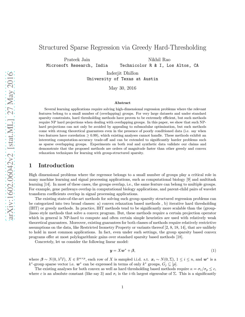 Structured Sparse Regression via Greedy Hard-Thresholding