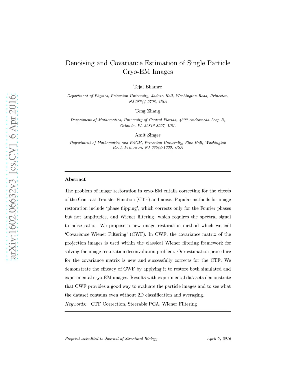 Denoising and Covariance Estimation of Single Particle Cryo-EM Images