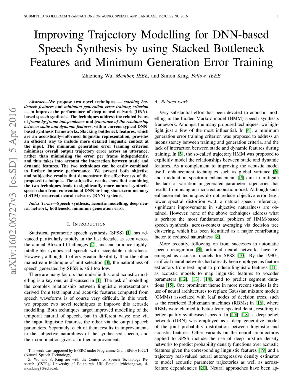 Stacked Bottleneck Features and Minimum Generation Error Training