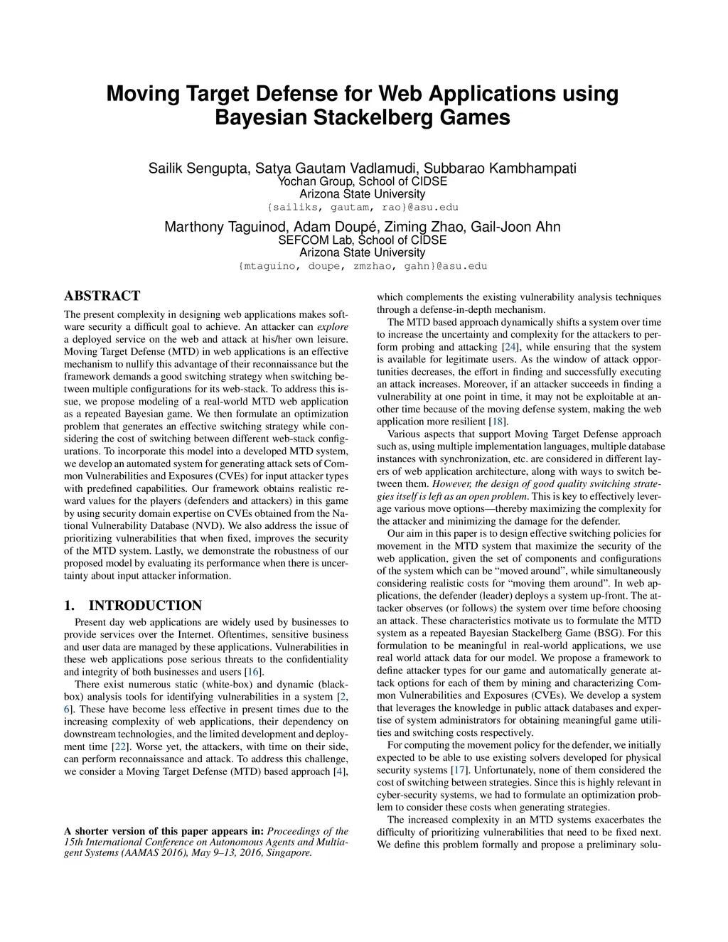 Moving Target Defense for Web Applications using Bayesian Stackelberg