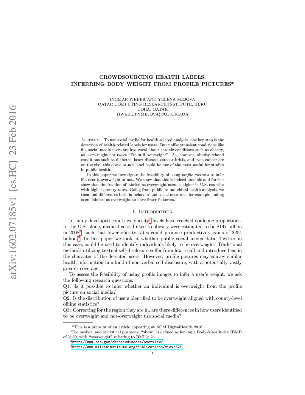 Crowdsourcing Health Labels: Inferring Body Weight from Profile Pictures