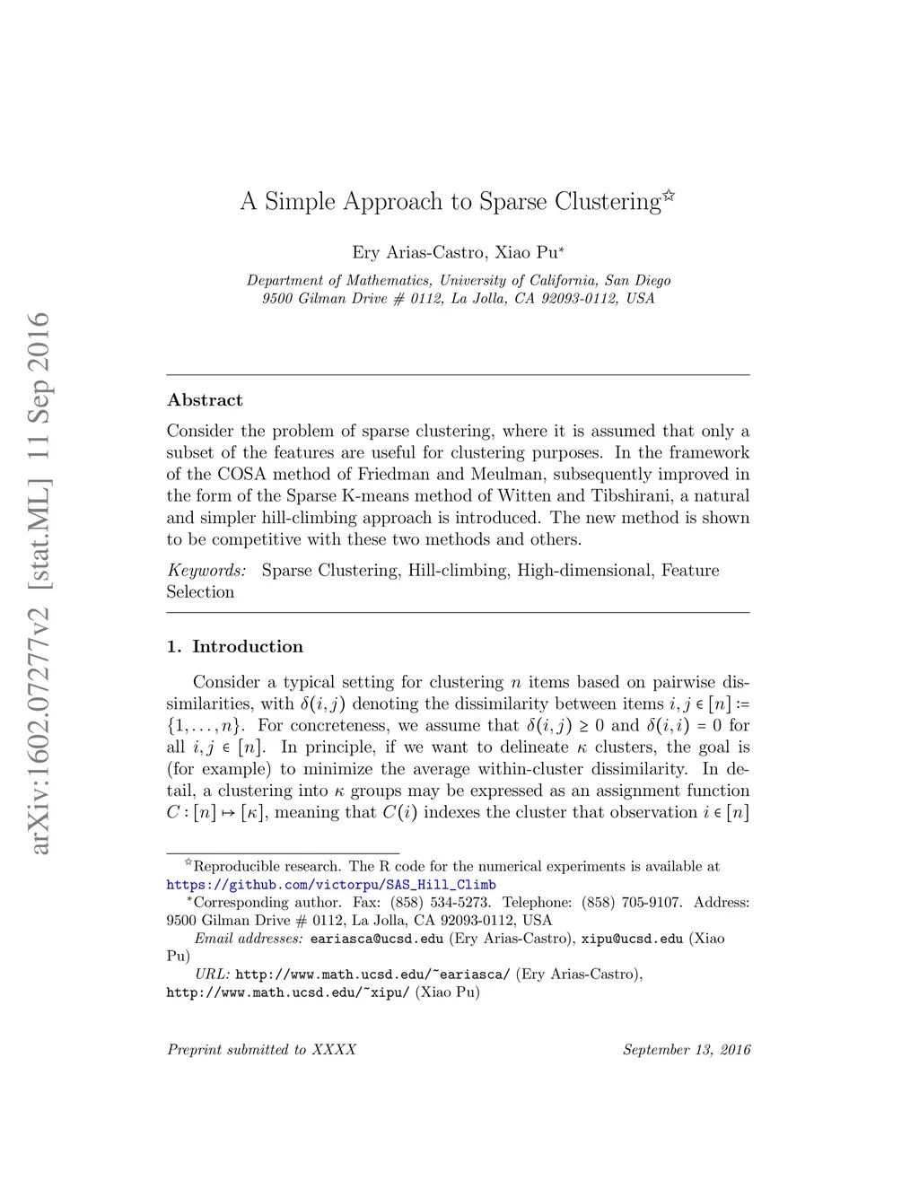Consider the problem of sparse clustering, where it is assumed that only a subset of the features are useful for clustering purposes. In the framework of the COSA method of Friedman and Meulman, subsequently improved in the form of the Sparse K-means method of Witten and Tibshirani, a natural and simpler hill-climbing approach is introduced. The new method is shown to be competitive with these two methods and others.