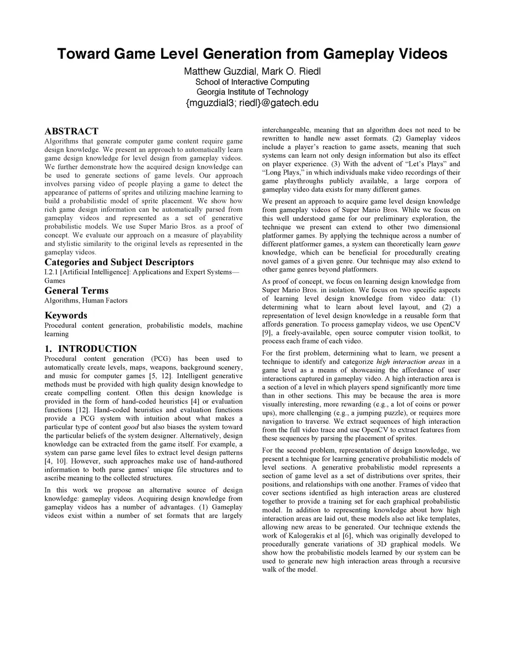 Algorithms that generate computer game content require game design knowledge. We present an approach to automatically learn game design knowledge for level design from gameplay videos. We further demonstrate how the acquired design knowledge can be used to generate sections of game levels. Our approach involves parsing video of people playing a game to detect the appearance of patterns of sprites and utilizing machine learning to build a probabilistic model of sprite placement. We show how rich game design information can be automatically parsed from gameplay videos and represented as a set of generative probabilistic models. We use Super Mario Bros. as a proof of concept. We evaluate our approach on a measure of playability and stylistic similarity to the original levels as represented in the gameplay videos.