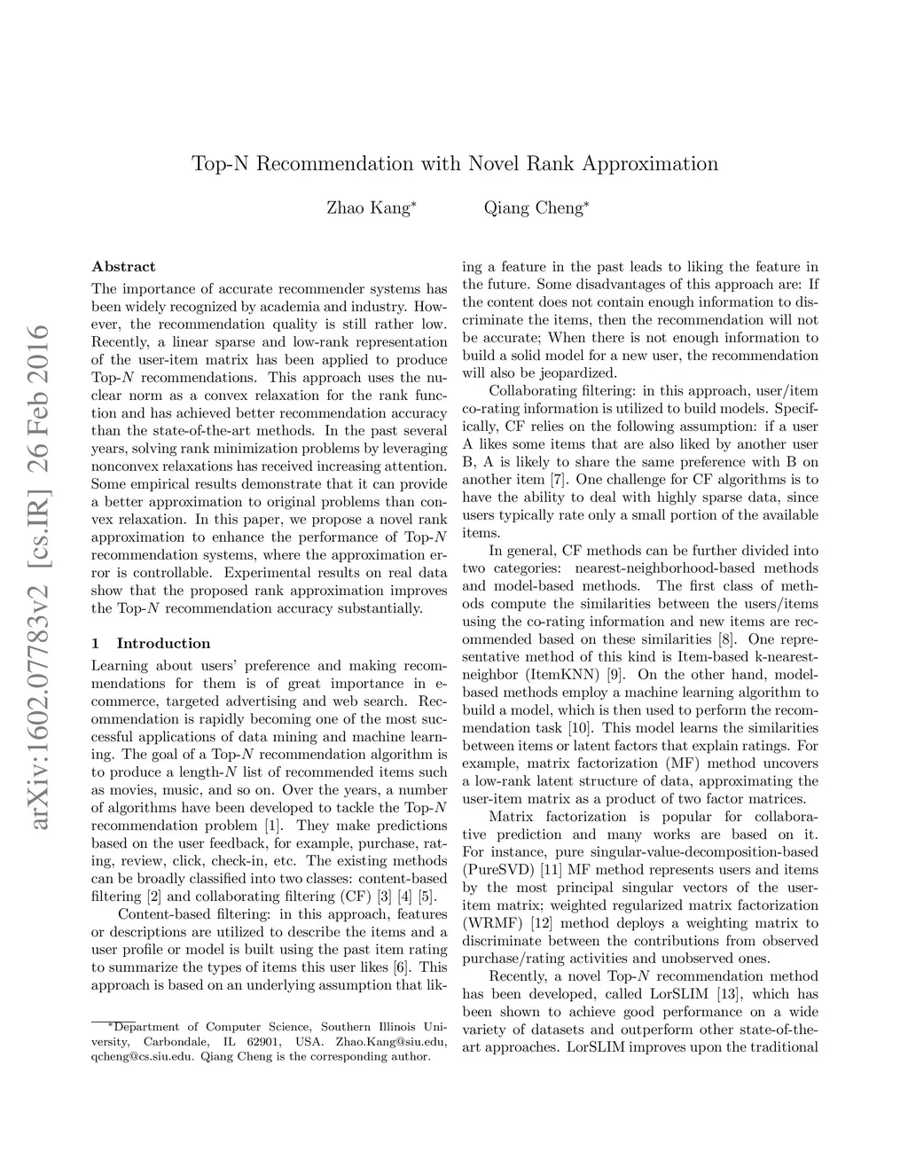 Top-N Recommendation with Novel Rank Approximation