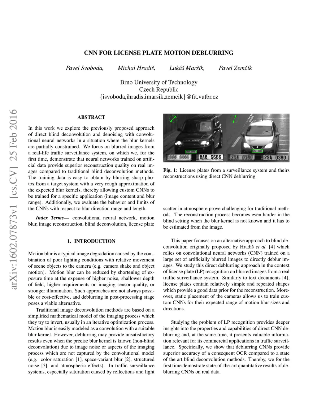 CNN for License Plate Motion Deblurring