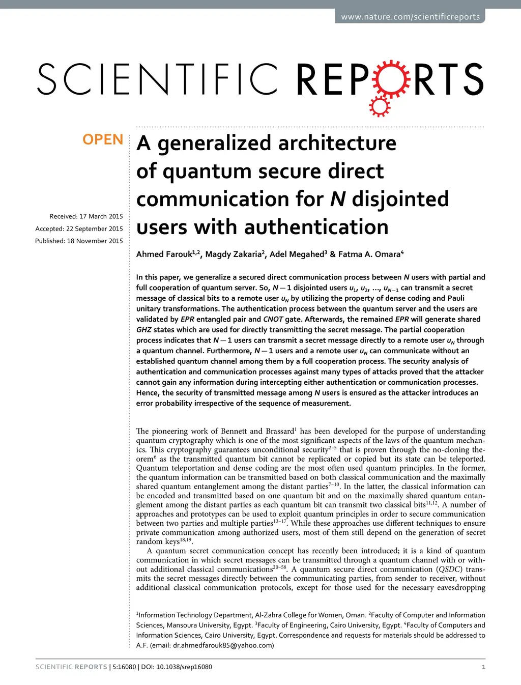 A generalized architecture of quantum secure direct communication for N