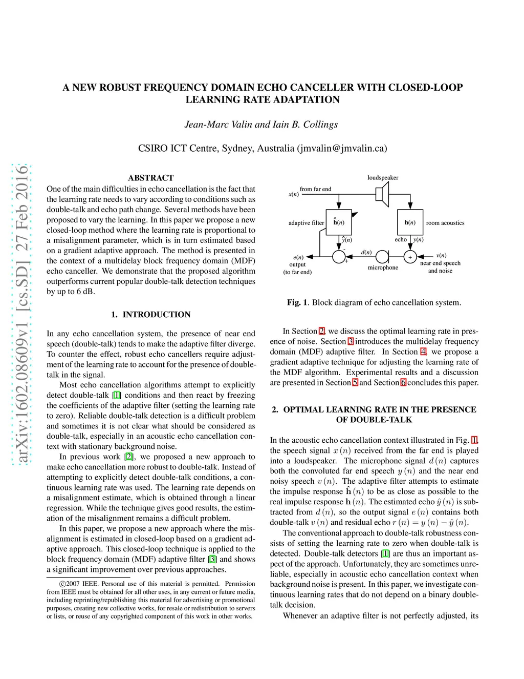 A New Robust Frequency Domain Echo Canceller With Closed-Loop Learning