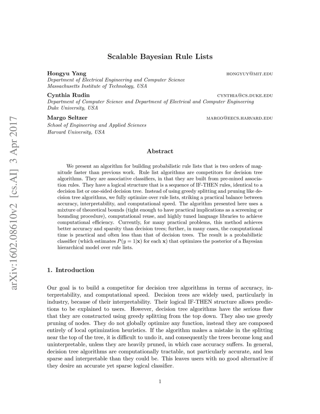 Scalable Bayesian Rule Lists