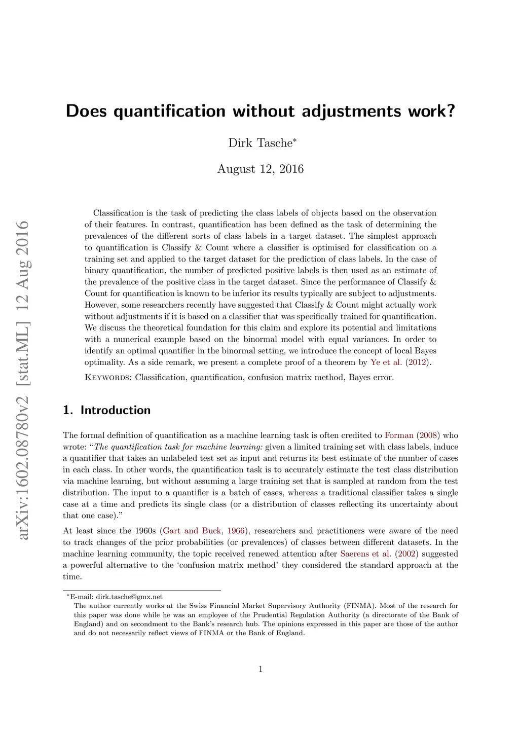 Classification is the task of predicting the class labels of objects based on the observation of their features. In contrast, quantification has been defined as the task of determining the prevalences of the different sorts of class labels in a target dataset. The simplest approach to quantification is Classify & Count where a classifier is optimised for classification on a training set and applied to the target dataset for the prediction of class labels. In the case of binary quantification, the number of predicted positive labels is then used as an estimate of the prevalence of the positive class in the target dataset. Since the performance of Classify & Count for quantification is known to be inferior its results typically are subject to adjustments. However, some researchers recently have suggested that Classify & Count might actually work without adjustments if it is based on a classifer that was specifically trained for quantification. We discuss the theoretical foundation for this claim and explore its potential and limitations with a numerical example based on the binormal model with equal variances. In order to identify an optimal quantifier in the binormal setting, we introduce the concept of local Bayes optimality. As a side remark, we present a complete proof of a theorem by Ye et al. (2012).