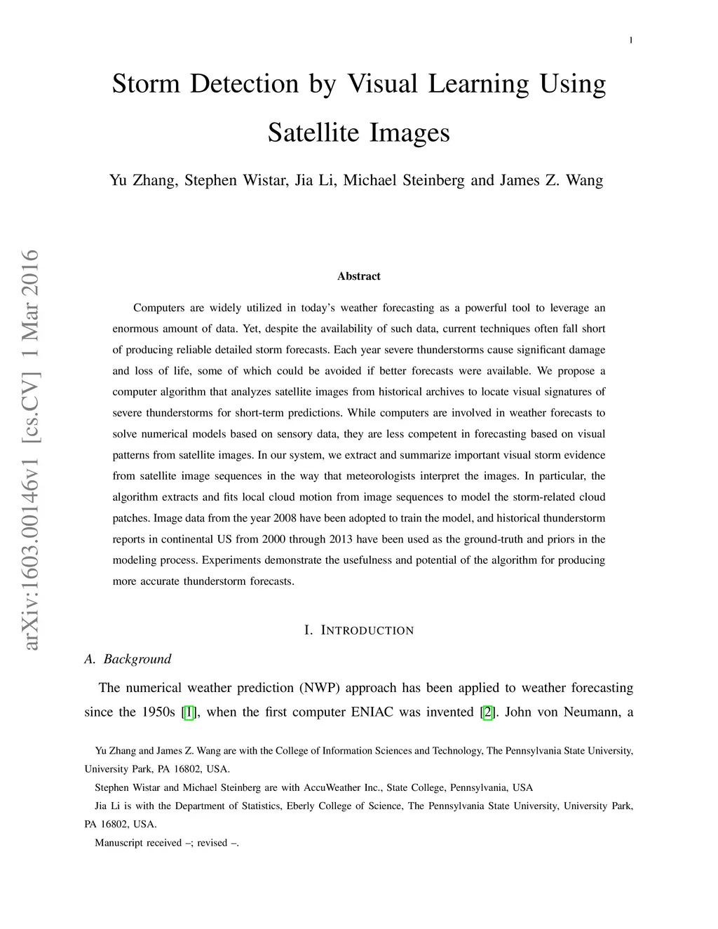 Storm Detection by Visual Learning Using Satellite Images