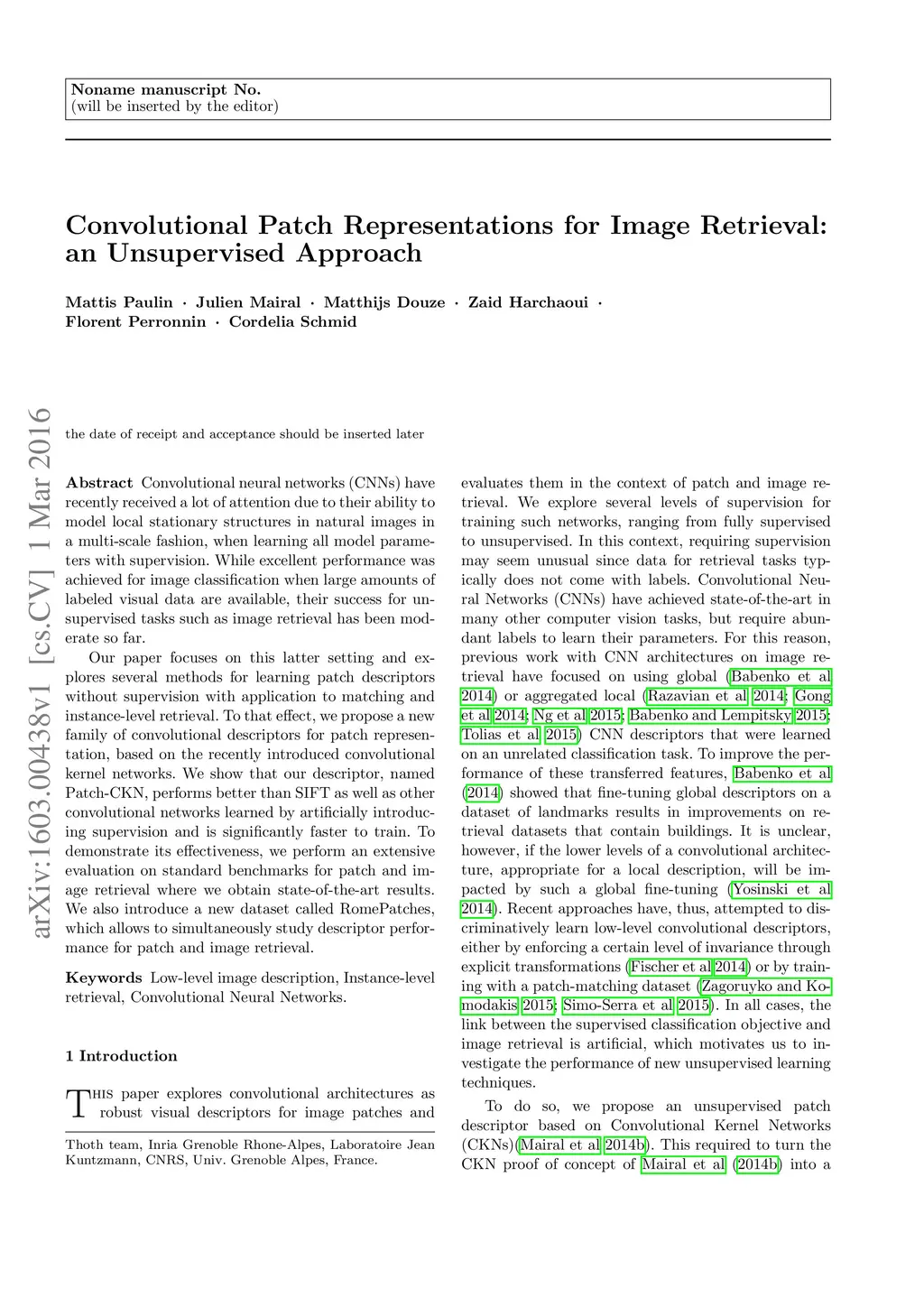 Convolutional Patch Representations for Image Retrieval: an Unsupervised