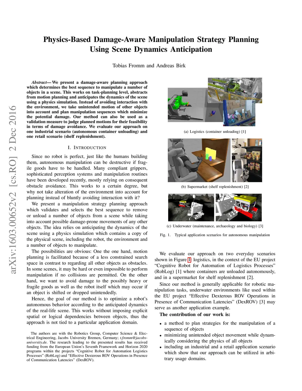 Physics-Based Damage-Aware Manipulation Strategy Planning Using Scene