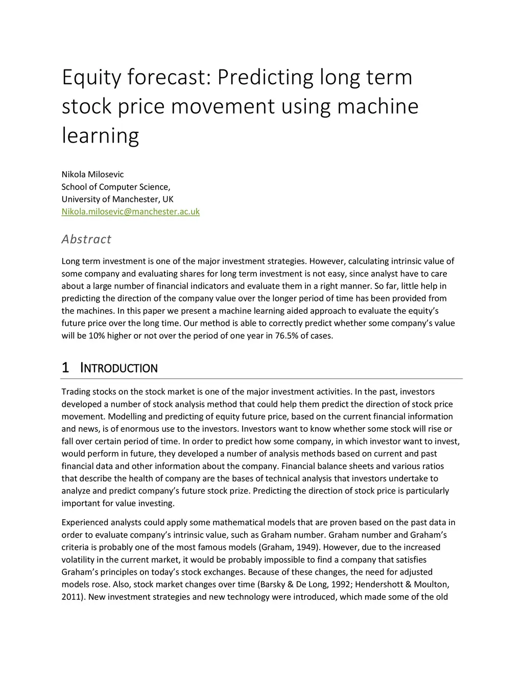 Long term investment is one of the major investment strategies. However, calculating intrinsic value of some company and evaluating shares for long term investment is not easy, since analyst have to care about a large number of financial indicators and evaluate them in a right manner. So far, little help in predicting the direction of the company value over the longer period of time has been provided from the machines. In this paper we present a machine learning aided approach to evaluate the equity's future price over the long time. Our method is able to correctly predict whether some company's value will be 10% higher or not over the period of one year in 76.5% of cases.