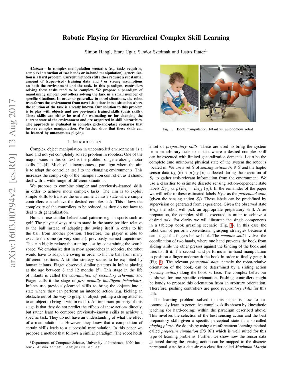 Robotic Playing for Hierarchical Complex Skill Learning