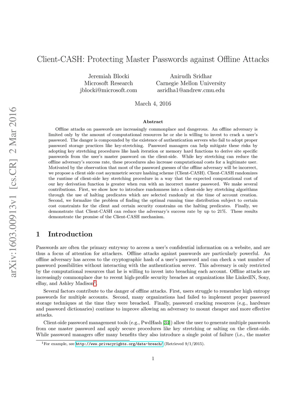Client-CASH: Protecting Master Passwords against Offline Attacks