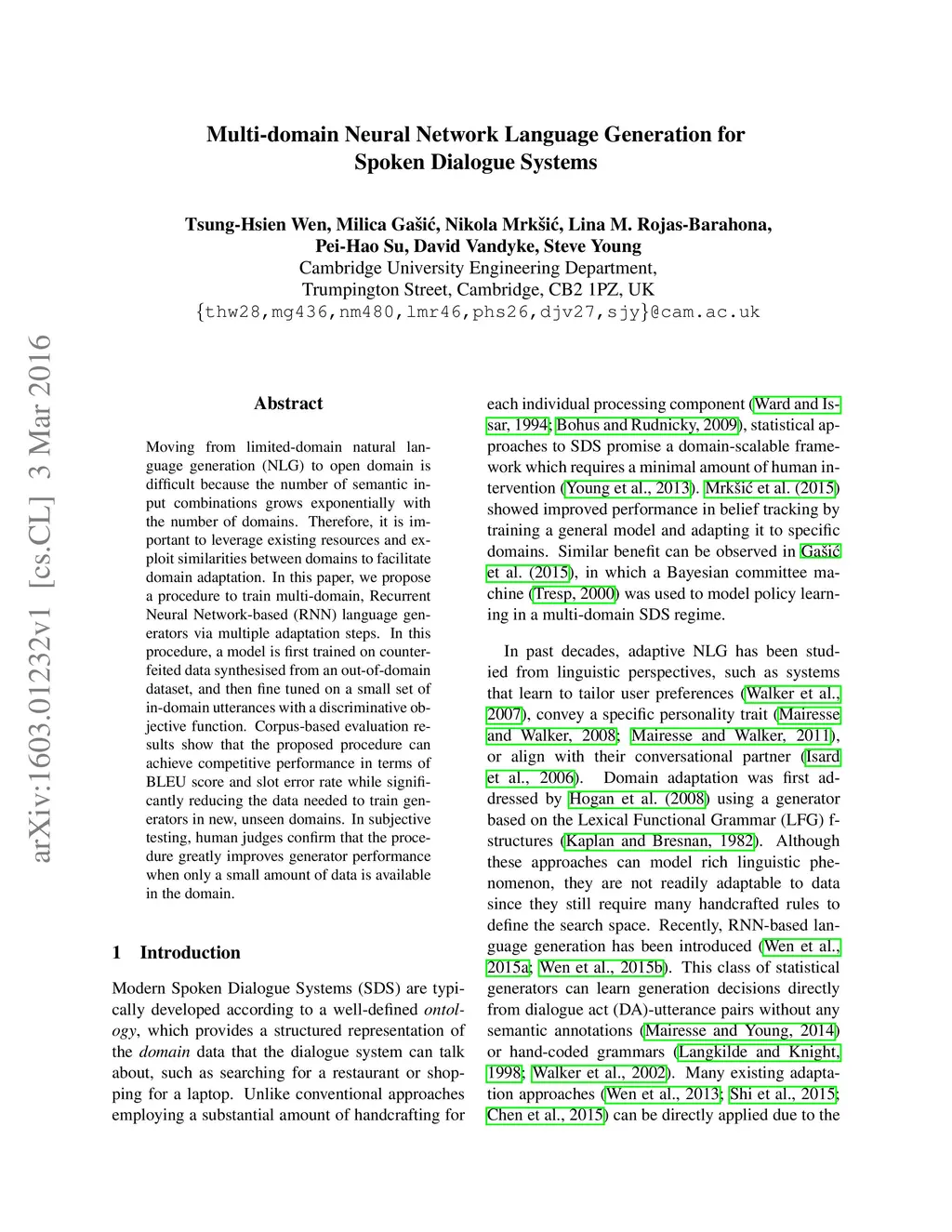 Multi-domain Neural Network Language Generation for Spoken Dialogue