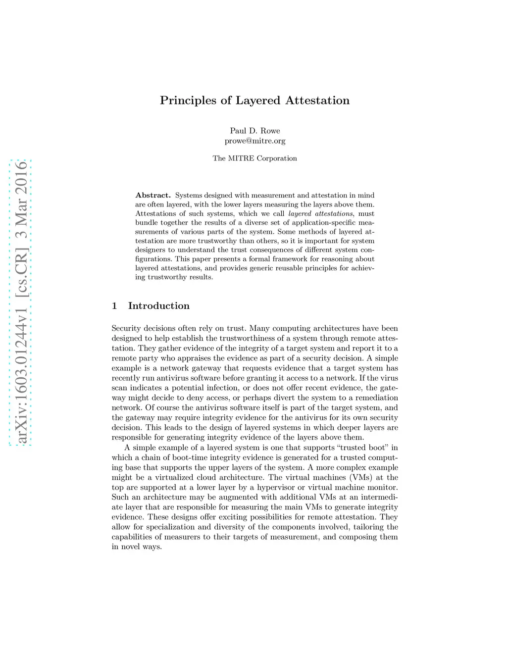 Systems designed with measurement and attestation in mind are often layered, with the lower layers measuring the layers above them. Attestations of such systems, which we call layered attestations, must bundle together the results of a diverse set of application-specific measurements of various parts of the system. Some methods of layered attestation are more trustworthy than others, so it is important for system designers to understand the trust consequences of different system configurations. This paper presents a formal framework for reasoning about layered attestations, and provides generic reusable principles for achieving trustworthy results.
