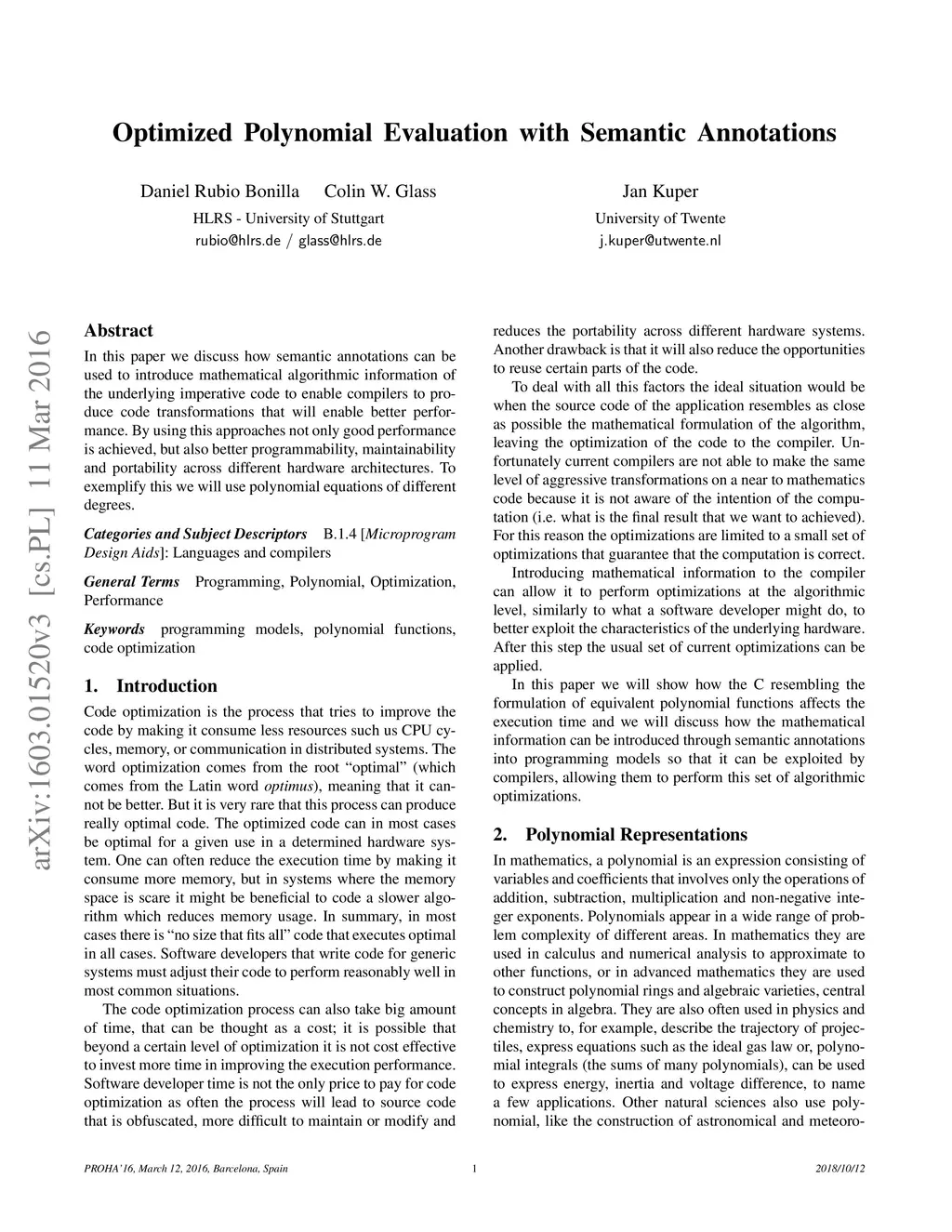 In this paper we discuss how semantic annotations can be used to introduce mathematical algorithmic information of the underlying imperative code to enable compilers to produce code transformations that will enable better performance. By using this approaches not only good performance is achieved, but also better programmability, maintainability and portability across different hardware architectures. To exemplify this we will use polynomial equations of different degrees.