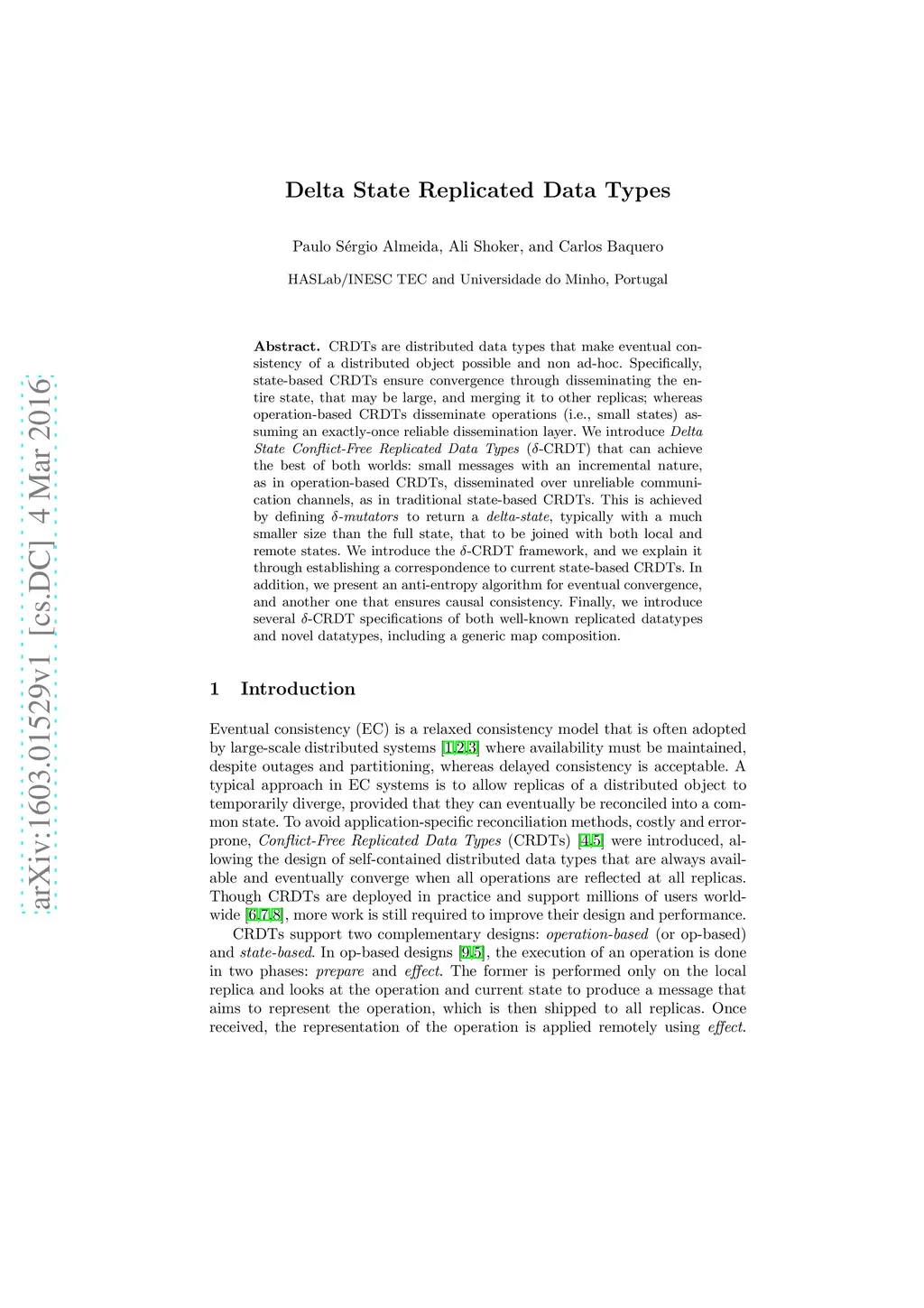 Delta State Replicated Data Types