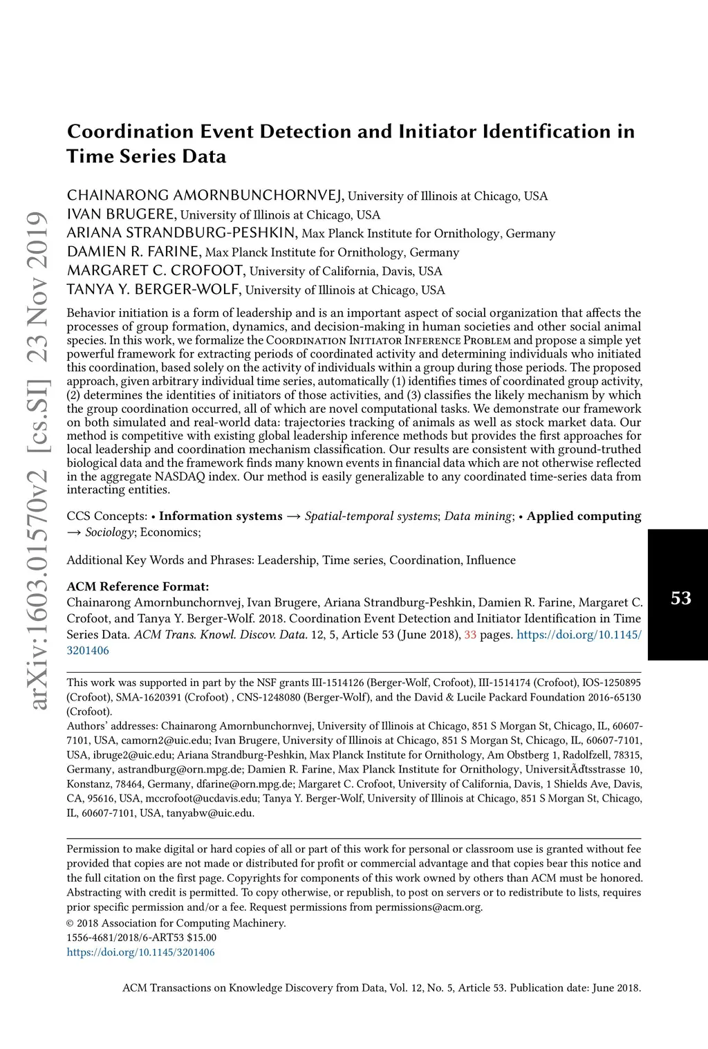 Coordination Event Detection and Initiator Identification in Time Series
