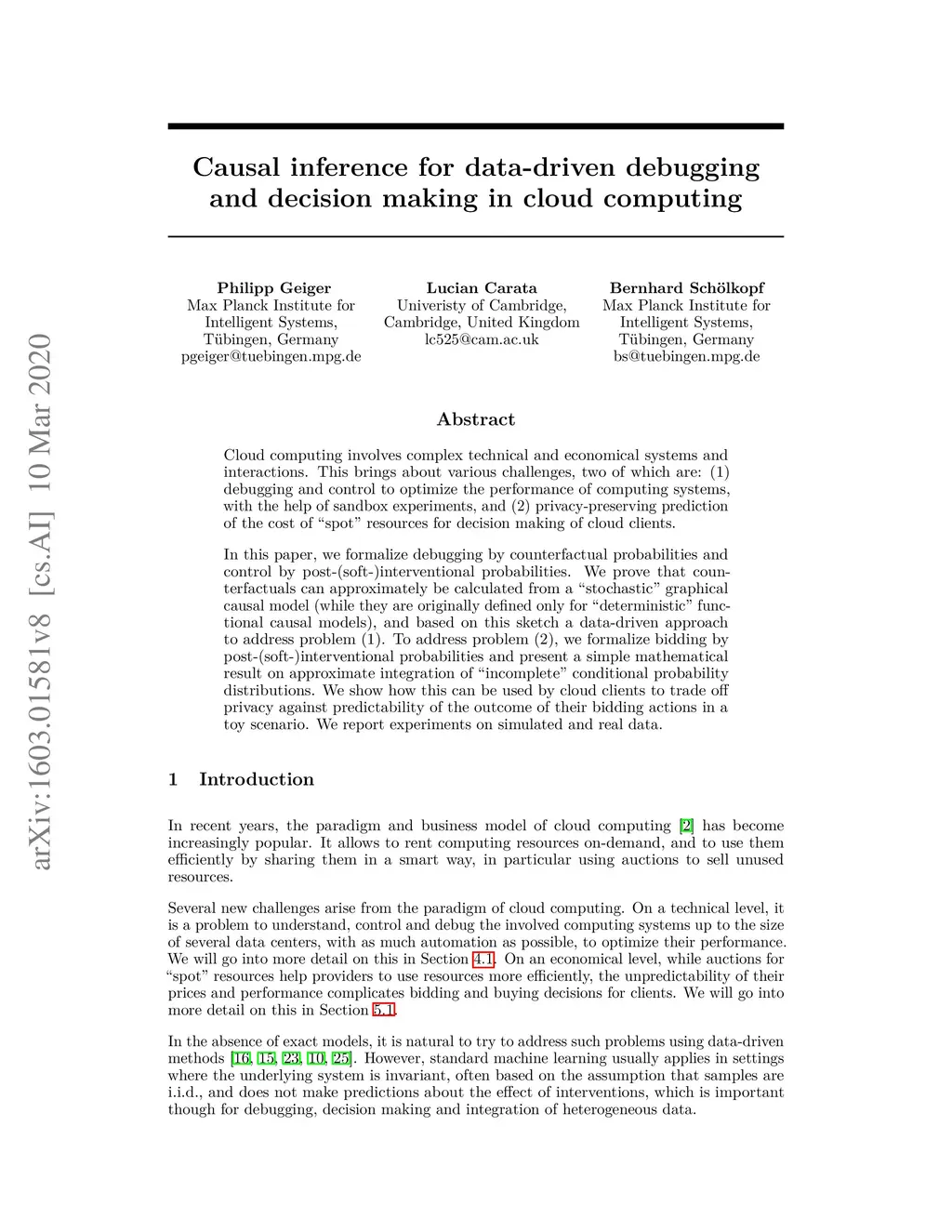 Causal inference for cloud computing