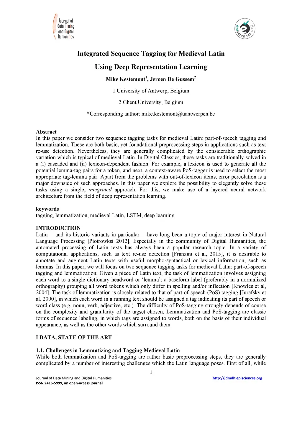 Integrated Sequence Tagging for Medieval Latin Using Deep Representation