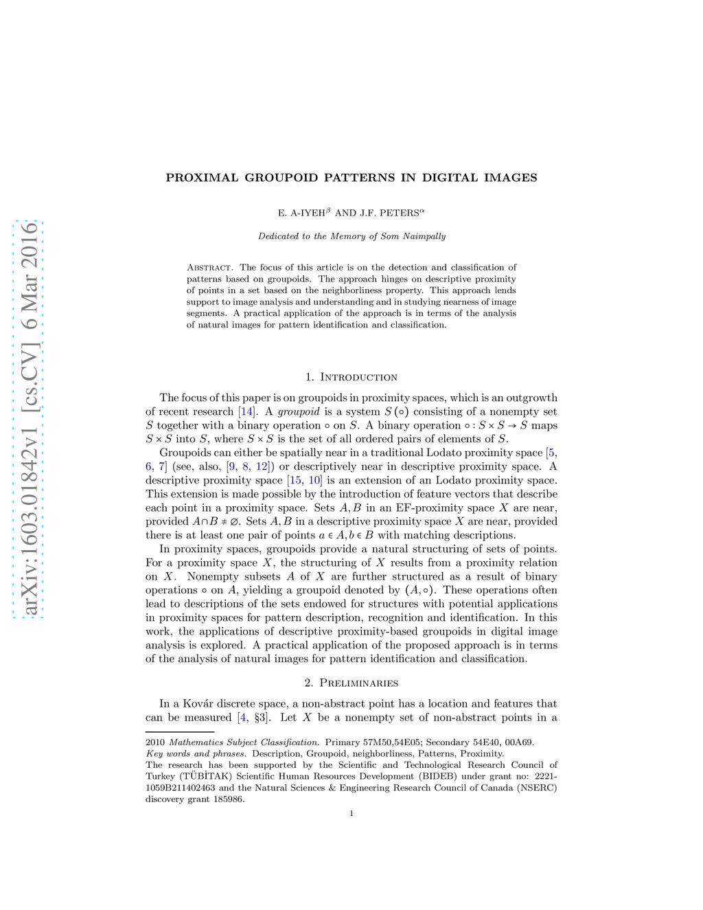 The focus of this article is on the detection and classification of patterns based on groupoids. The approach hinges on descriptive proximity of points in a set based on the neighborliness property. This approach lends support to image analysis and understanding and in studying nearness of image segments. A practical application of the approach is in terms of the analysis of natural images for pattern identification and classification.