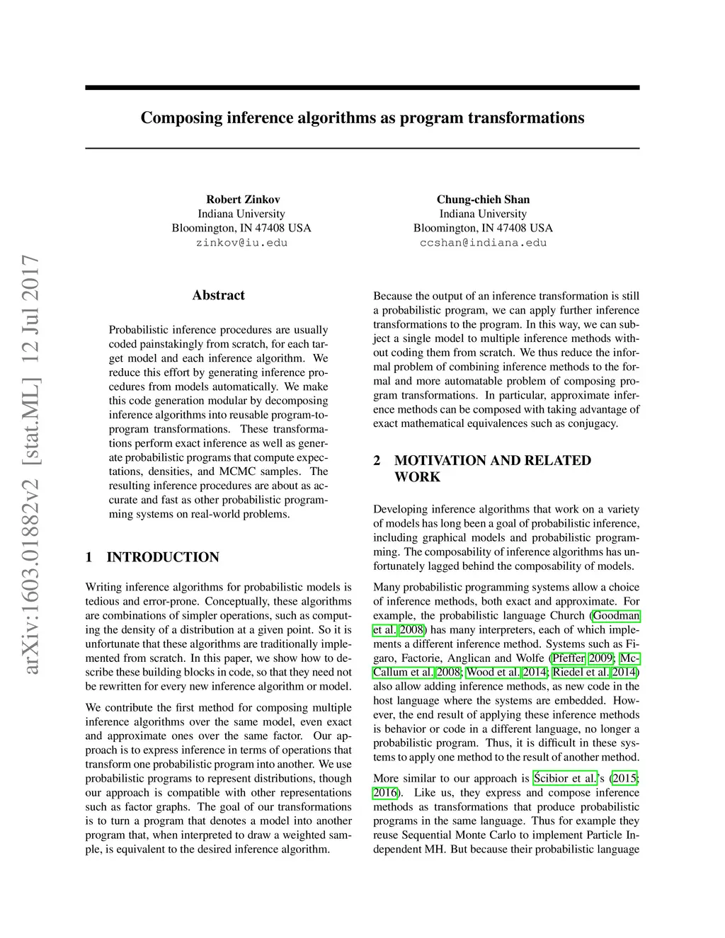 Composing inference algorithms as program transformations