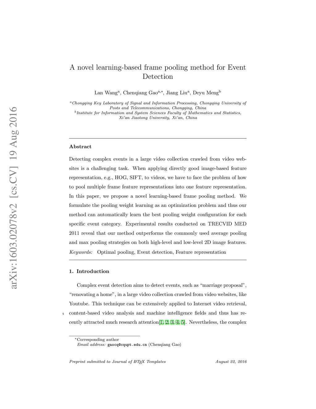 A novel learning-based frame pooling method for Event Detection