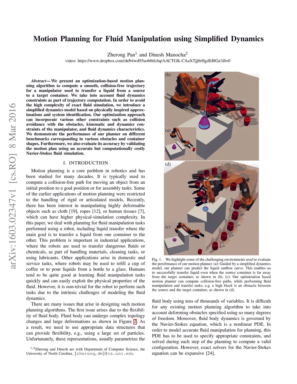 Motion Planning for Fluid Manipulation using Simplified Dynamics