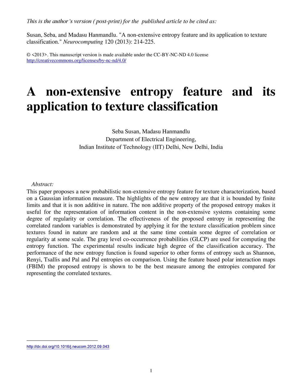 This paper proposes a new probabilistic non-extensive entropy feature for texture characterization, based on a Gaussian information measure. The highlights of the new entropy are that it is bounded by finite limits and that it is non additive in nature. The non additive property of the proposed entropy makes it useful for the representation of information content in the non-extensive systems containing some degree of regularity or correlation. The effectiveness of the proposed entropy in representing the correlated random variables is demonstrated by applying it for the texture classification problem since textures found in nature are random and at the same time contain some degree of correlation or regularity at some scale. The gray level co-occurrence probabilities (GLCP) are used for computing the entropy function. The experimental results indicate high degree of the classification accuracy. The performance of the new entropy function is found superior to other forms of entropy such as Shannon, Renyi, Tsallis and Pal and Pal entropies on comparison. Using the feature based polar interaction maps (FBIM) the proposed entropy is shown to be the best measure among the entropies compared for representing the correlated textures.
