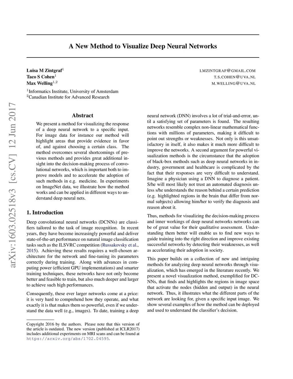We present a method for visualising the response of a deep neural network to a specific input. For image data for instance our method will highlight areas that provide evidence in favor of, and against choosing a certain class. The method overcomes several shortcomings of previous methods and provides great additional insight into the decision making process of convolutional networks, which is important both to improve models and to accelerate the adoption of such methods in e.g. medicine. In experiments on ImageNet data, we illustrate how the method works and can be applied in different ways to understand deep neural nets.