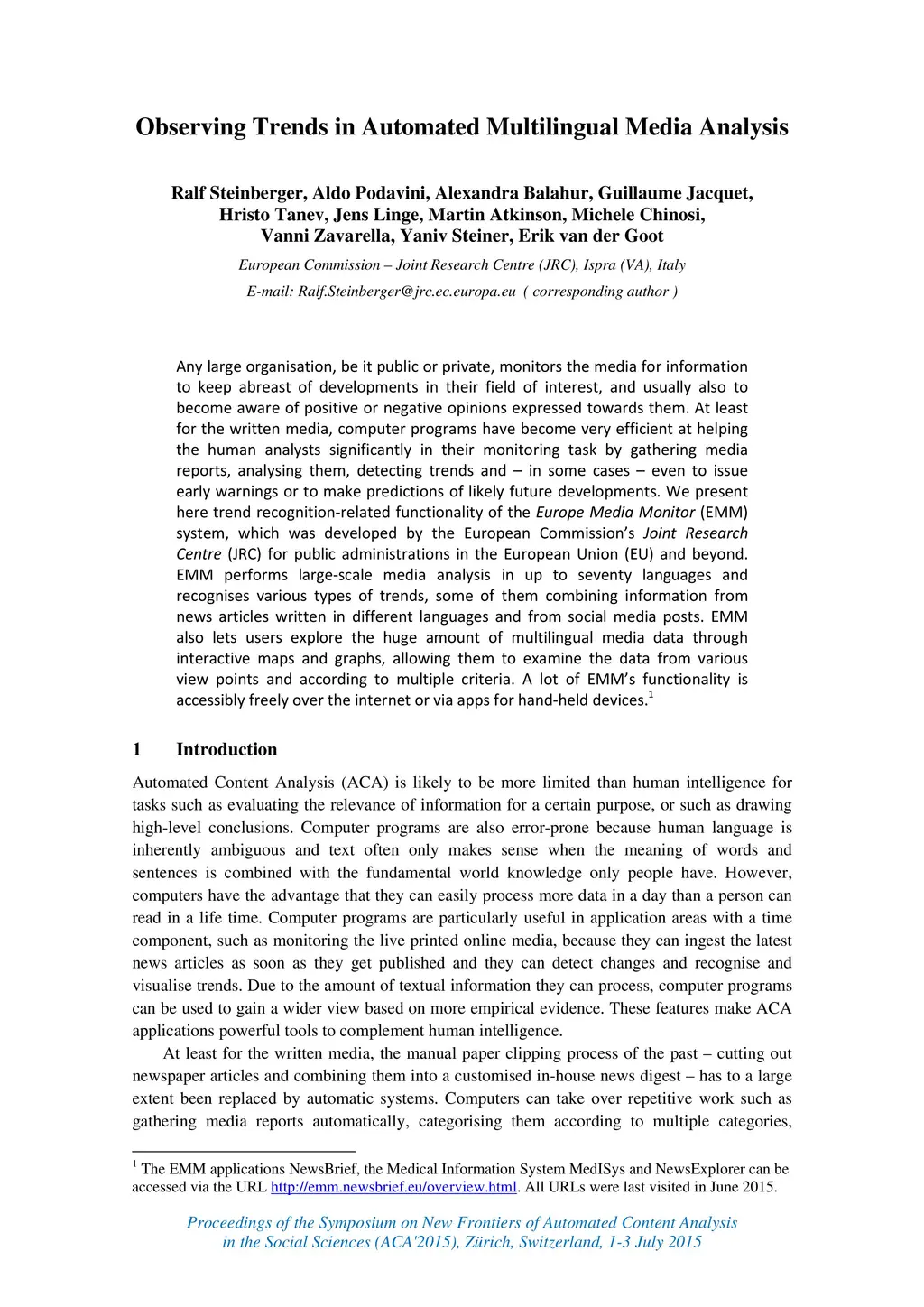 Observing Trends in Automated Multilingual Media Analysis