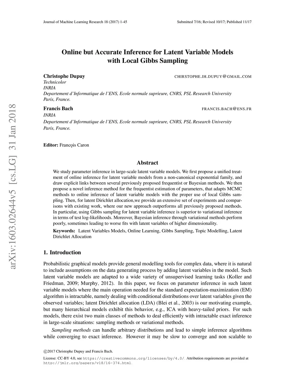 We study parameter inference in large-scale latent variable models. We first propose an unified treatment of online inference for latent variable models from a non-canonical exponential family, and draw explicit links between several previously proposed frequentist or Bayesian methods. We then propose a novel inference method for the frequentist estimation of parameters, that adapts MCMC methods to online inference of latent variable models with the proper use of local Gibbs sampling. Then, for latent Dirich-let allocation,we provide an extensive set of experiments and comparisons with existing work, where our new approach outperforms all previously proposed methods. In particular, using Gibbs sampling for latent variable inference is superior to variational inference in terms of test log-likelihoods. Moreover, Bayesian inference through variational methods perform poorly, sometimes leading to worse fits with latent variables of higher dimensionality.