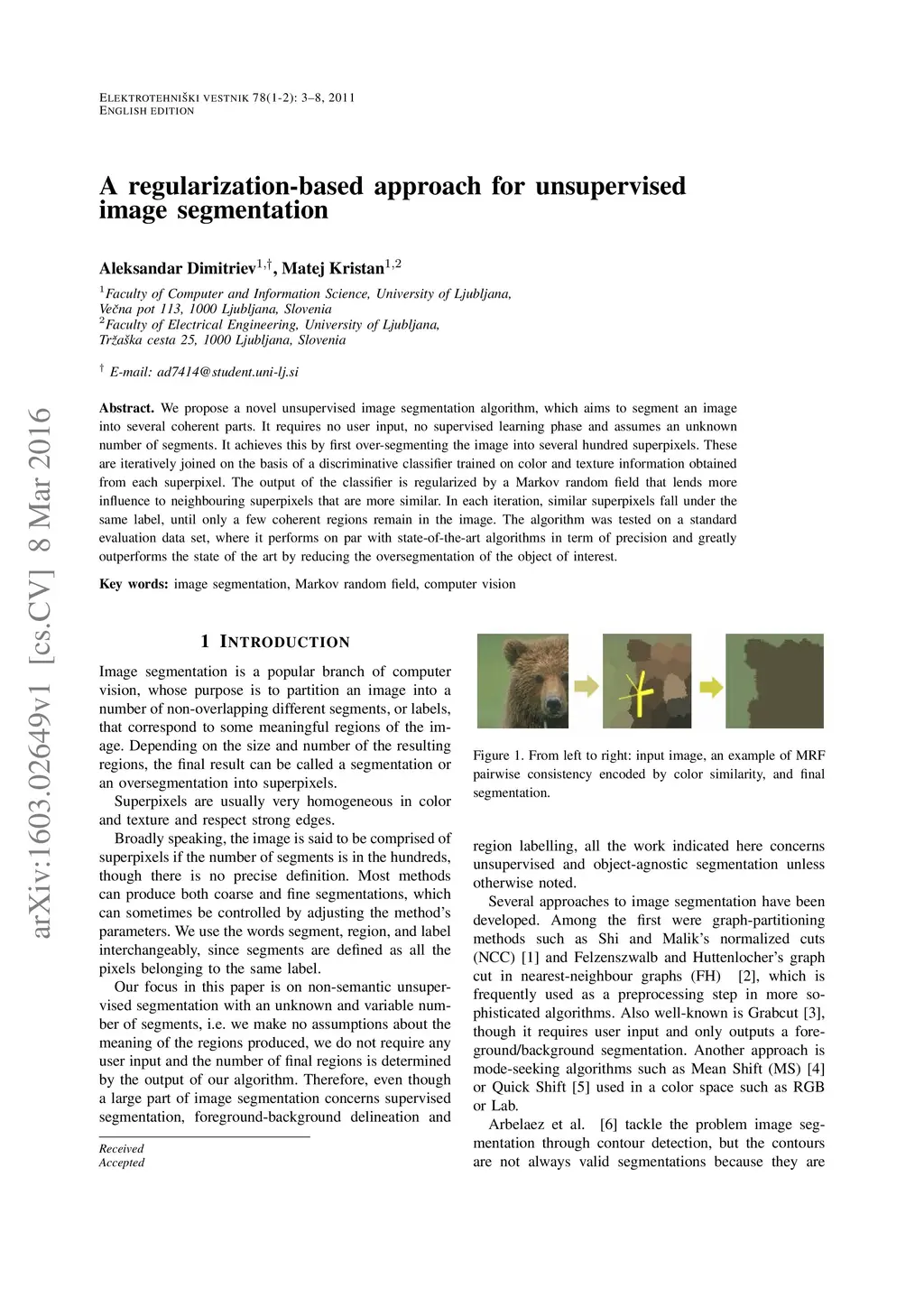 A regularization-based approach for unsupervised image segmentation