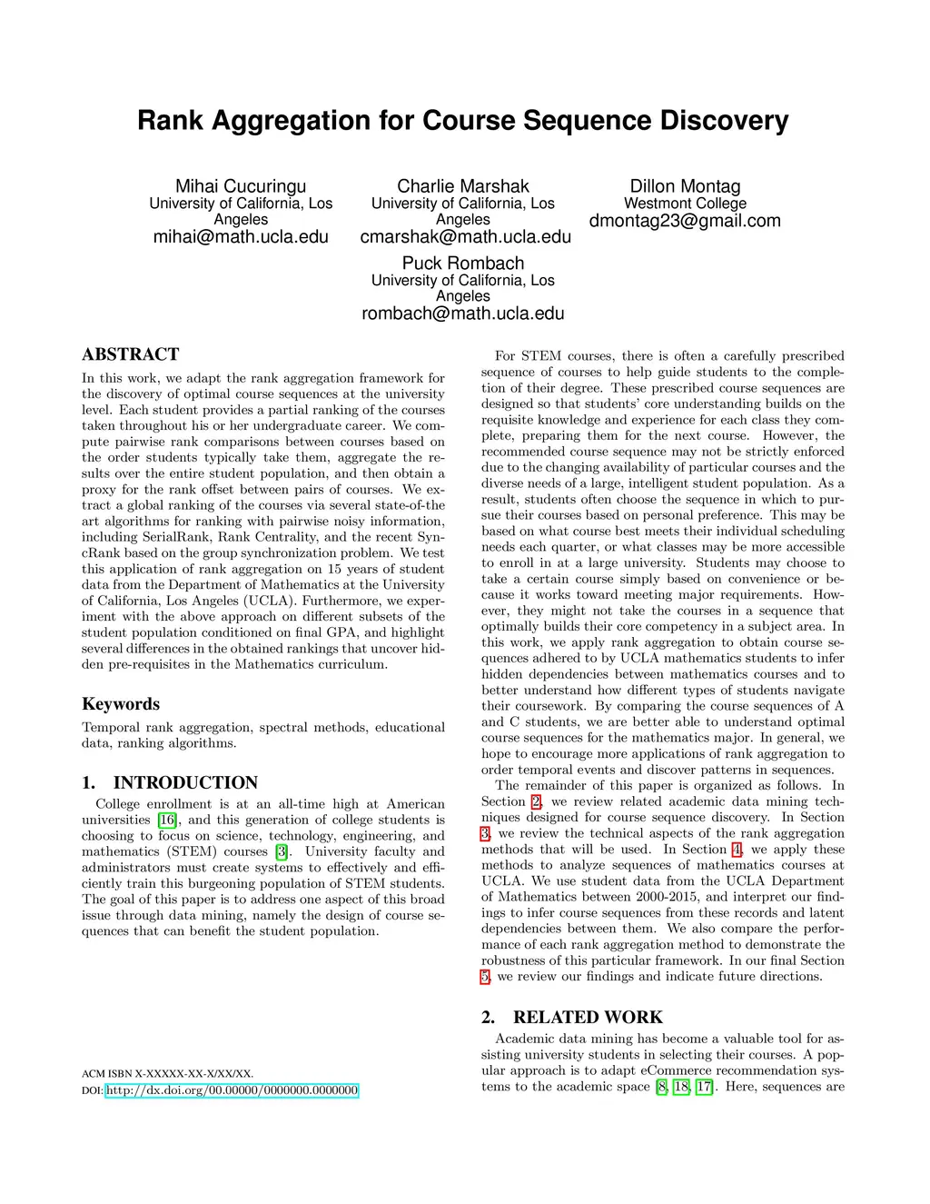 In this work, we adapt the rank aggregation framework for the discovery of optimal course sequences at the university level. Each student provides a partial ranking of the courses taken throughout his or her undergraduate career. We compute pairwise rank comparisons between courses based on the order students typically take them, aggregate the results over the entire student population, and then obtain a proxy for the rank offset between pairs of courses. We extract a global ranking of the courses via several state-of-the art algorithms for ranking with pairwise noisy information, including SerialRank, Rank Centrality, and the recent SyncRank based on the group synchronization problem. We test this application of rank aggregation on 15 years of student data from the Department of Mathematics at the University of California, Los Angeles (UCLA). Furthermore, we experiment with the above approach on different subsets of the student population conditioned on final GPA, and highlight several differences in the obtained rankings that uncover hidden pre-requisites in the Mathematics curriculum.