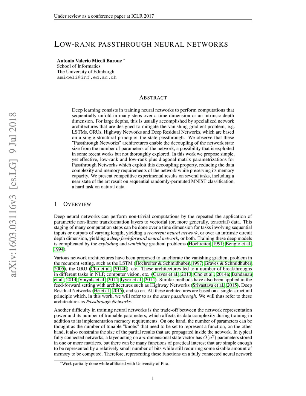 Low-rank passthrough neural networks