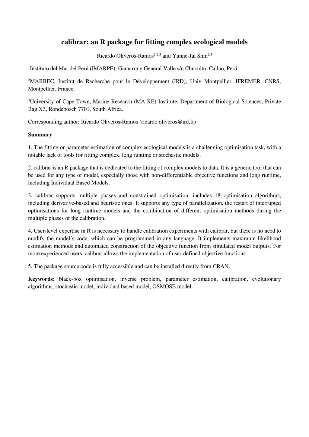 Calibrar: an R package for fitting complex ecological models